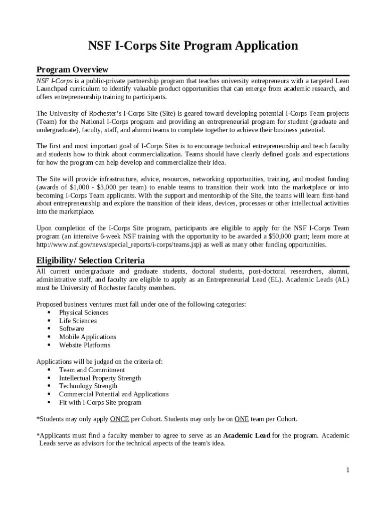 Nsf I-corps Site Program Application word template: frequently asked questions