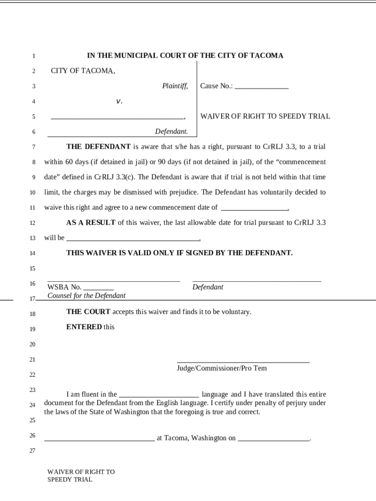 The tacoma municipal court s is a Word document you can get completed and signed for specific reasons. Then, it is furnished to the exact addressee in order to provide certain details of certain kinds. The completion and signing is available manually or via a suitable solution e. g. PDFfiller. These services help to send in any PDF or Word file without printing them out. While doing that, you can edit it according to the needs you have and put a legal digital signature. Once done, the user sends the tacoma municipal court s to the respective recipient or several ones by email or fax. PDFfiller has got a feature and options that make your Word form printable. It includes a number of settings when printing out appearance. It doesn't matter how you will distribute a document - in hard copy or electronically - it will always look neat and clear. To not to create a new editable template from the beginning again and again, turn the original document into a template. After that, you will have a customizable sample.