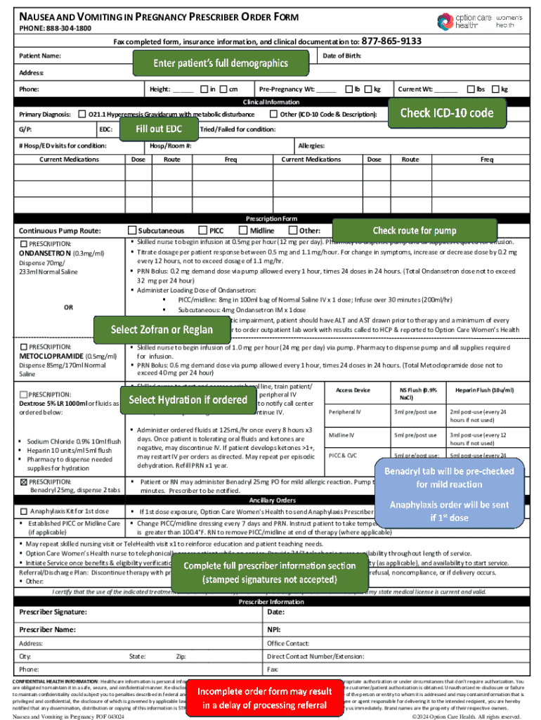 Get the free Nausea and Vomiting in Pregnancy Prescriber Order Form