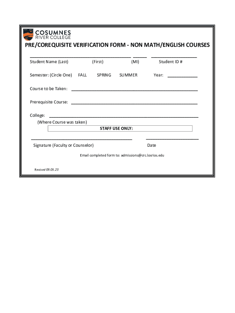 Get the free Pre/corequisite Verification Form - Non Math/english Courses - crc losrios