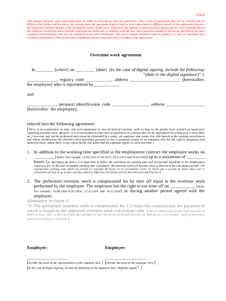 The Overtime work agreement is a fillable form in MS Word extension which can be completed and signed for certain purpose. In that case, it is furnished to the exact addressee to provide some details of certain kinds. The completion and signing can be done in hard copy by hand or with a trusted application like PDFfiller. These tools help to submit any PDF or Word file without printing out. It also lets you customize it according to the needs you have and put an official legal electronic signature. Upon finishing, the user ought to send the Overtime work agreement to the respective recipient or several ones by email and also fax. PDFfiller offers a feature and options that make your template printable. It includes various settings for printing out. It does no matter how you'll file a document - in hard copy or by email - it will always look professional and clear. To not to create a new writable document from scratch over and over, turn the original document as a template. Later, you will have a customizable sample.