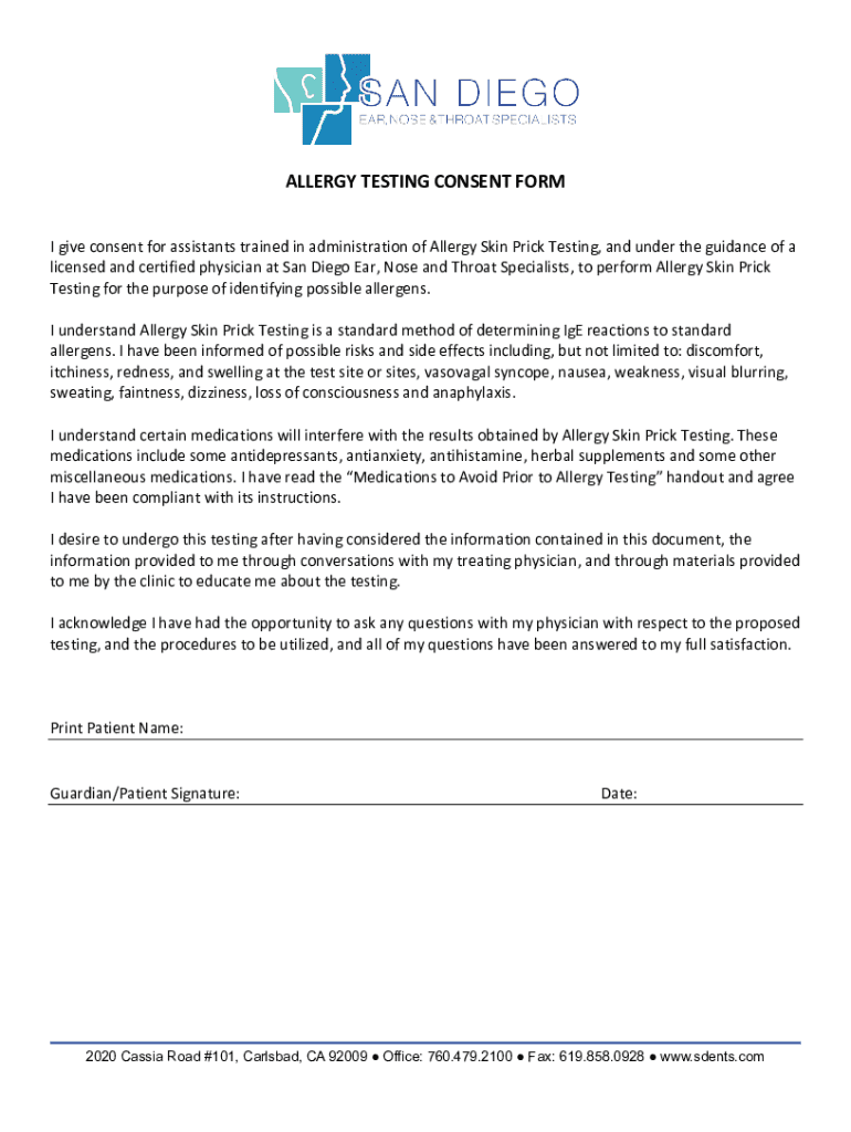 Fill out your allergy testing consent form online with pdfFiller!