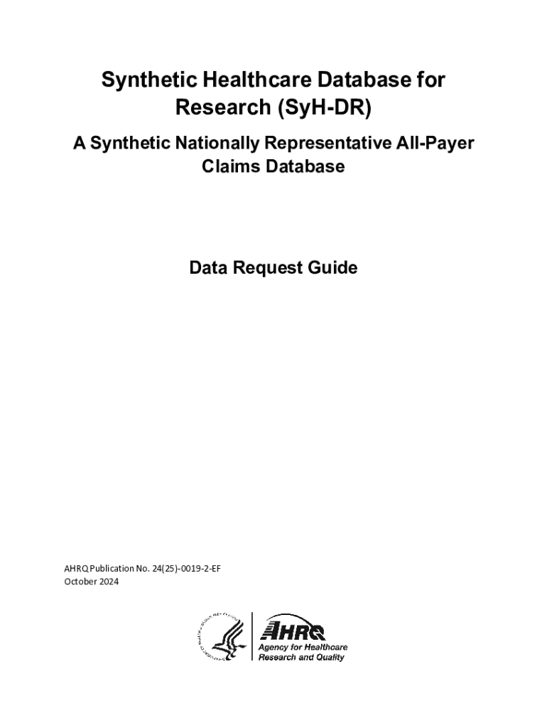 El SyH-DR Data Request Guide está destinado a los investigadores que desean solicitar acceso a SyH-DR. Este guía paso a paso incluye instrucciones para completar y enviar el paquete de solicitud, una visión general del proceso de revisión y comunicación de solicitudes de AHRQ, y los requisitos del sistema para acceder a SyH-DR.