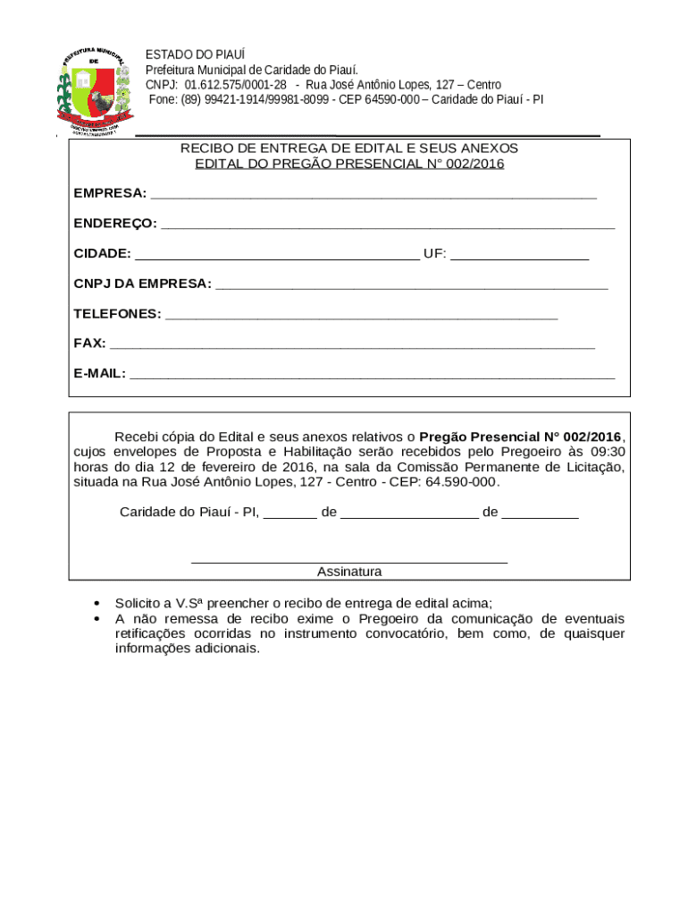 Template Estado do Piaui Prefeitura Municipal de Caridade do Piaui instructions