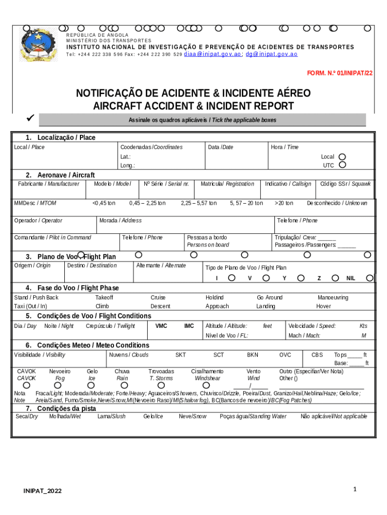What is notificao de acidente & incidente areo aircraft accident ... Form?