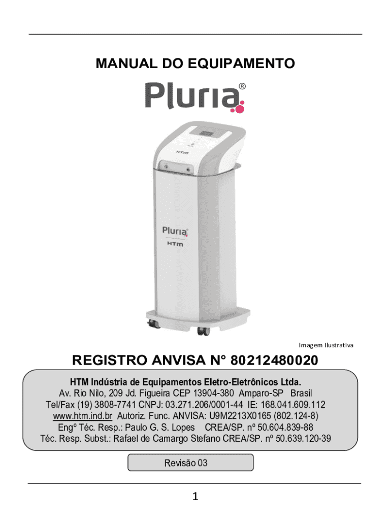 Obtenha o gratuito Manual Do Equipamento Pluria