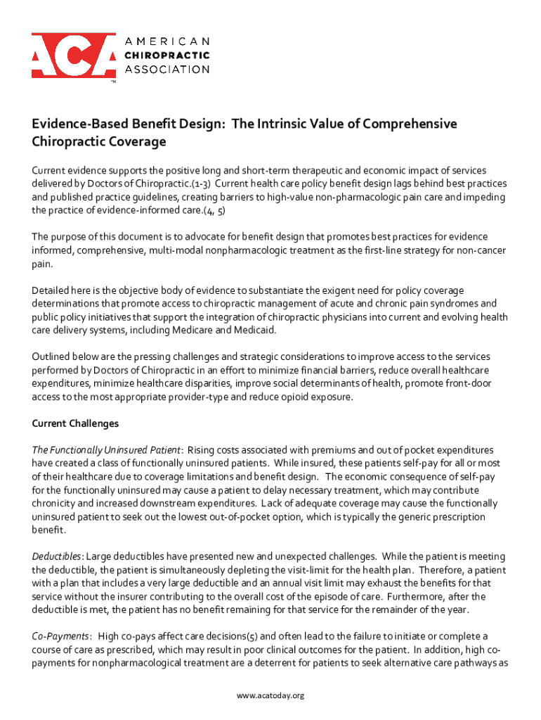 EvidenceBased Benefit Design: The Intrinsic Value of Comprehensive Chiropractic Coverage Current evidence supports the positive long and shortterm therapeutic and economic impact of services delivered