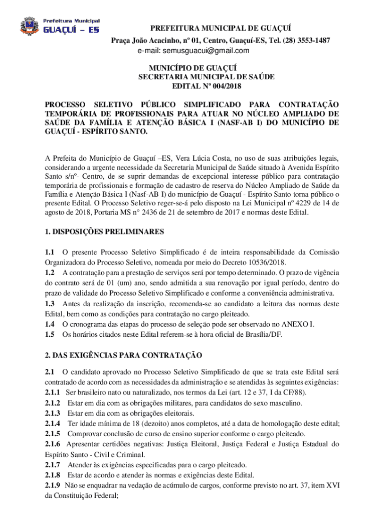 Obtenha o gratuito Edital Nº 004/2018
