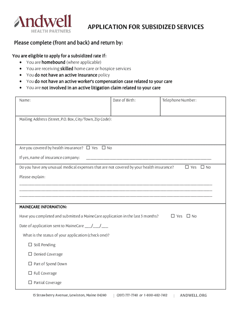 Get the free Application for Subsidized Services