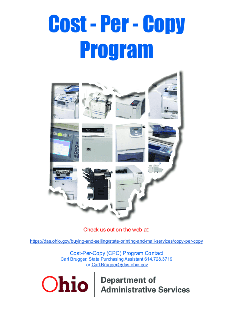 Cost Per Copy ProgramCheck us out on the web at: https://das.ohio.gov/buyingandselling/stateprintingandmailservices/copypercopyCostPerCopy (CPC) Program ContactCarl Brugger, State Purchasing Assistant