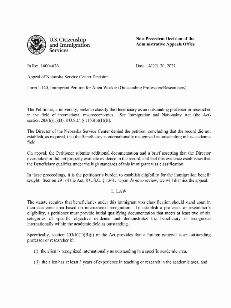 Get the free Non-precedent Decision of the Administrative Appeals Office