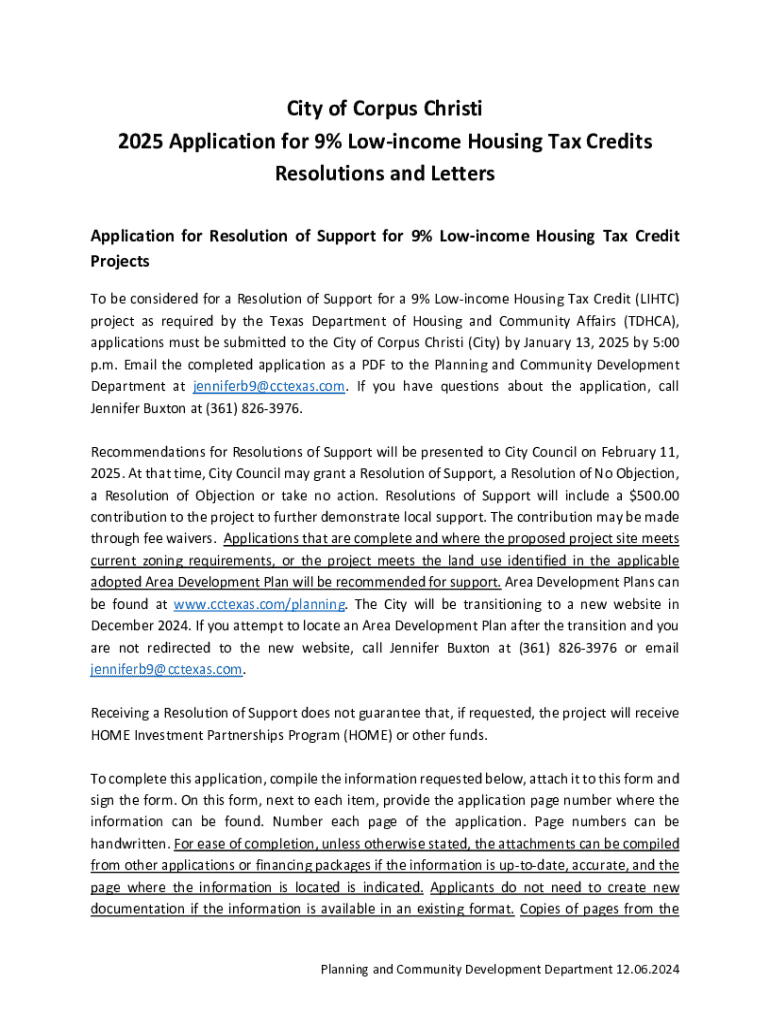 Esta aplicación es para solicitar una Resolución de Apoyo para un proyecto de Crédito Fiscal de Vivienda de Bajo Ingreso del 9% (LIHTC) ante el Departamento de Vivienda y Asuntos Comunitarios de