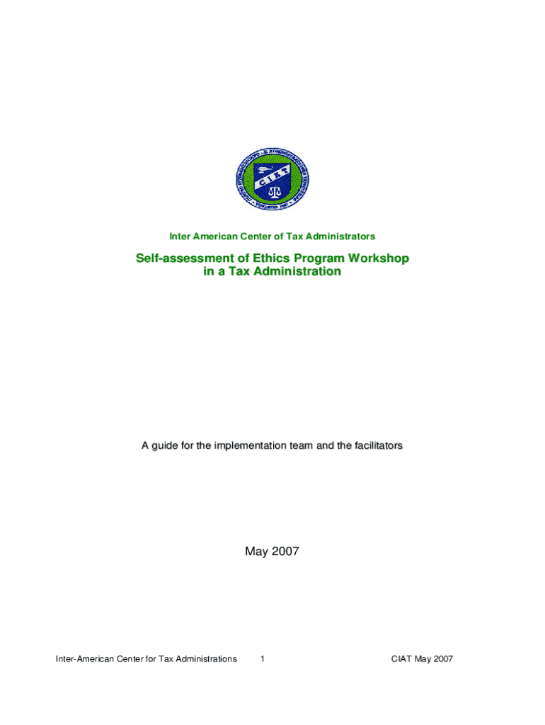 Inter American Center of Tax AdministratorsSelfassessment of Ethics Program Workshop in a Tax AdministrationA guide for the implementation team and the facilitatorsMay 2007InterAmerican Center for Tax Administrations1CIAT May 2007This document was developed through the CIAT Working Group on the Promotion of Ethics and Integrity, based on the World Customs Organization Diagnostic Study approach.This Guide is intended to be an evolving document and will be updated from time to time