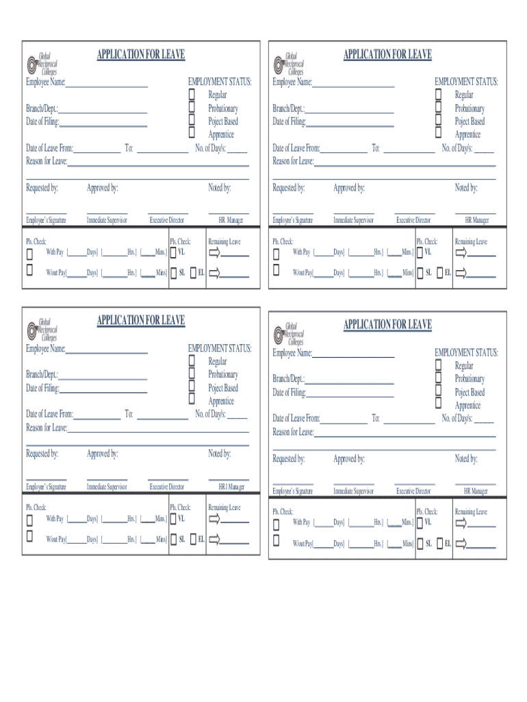 This document serves as an application form for employees to request leave from work, outlining necessary details such as employment status, dates of leave, and reasons for leave.