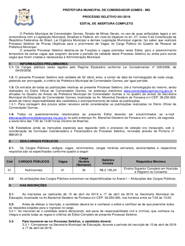 Obtenha o gratuito Processo Seletivo 001/2019