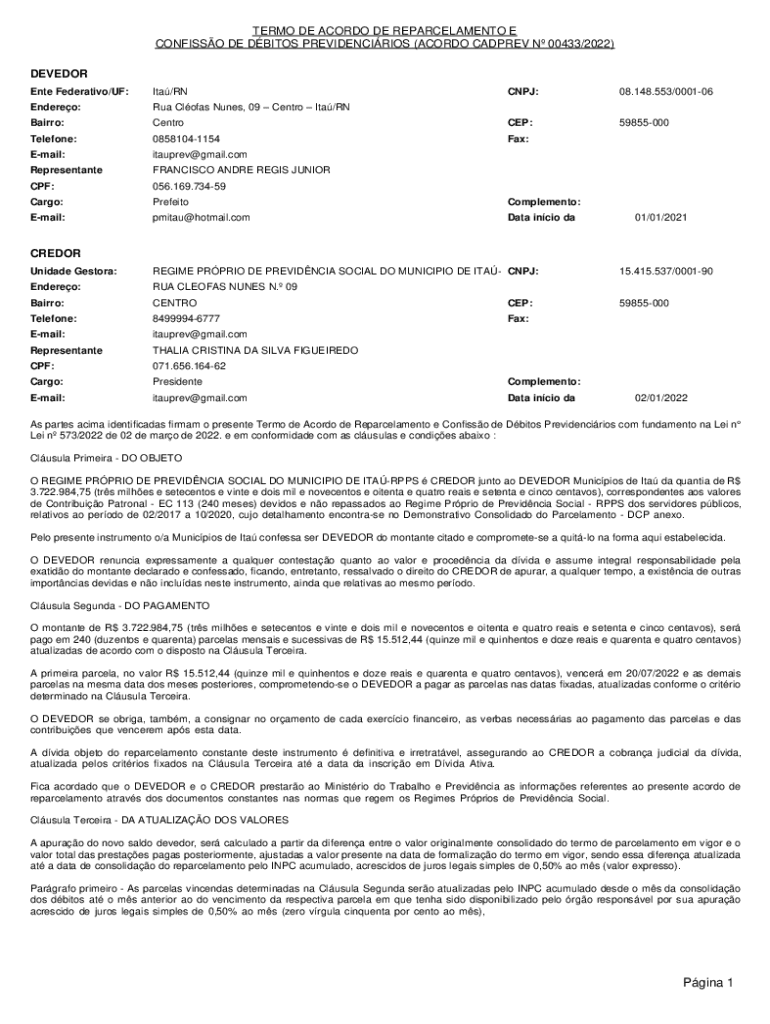 Obtenha o gratuito Termo De Acordo De Reparcelamento E Confissão De Débitos Previdenciários