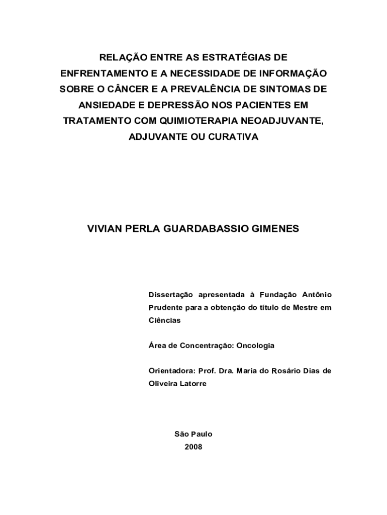 RELAO ENTRE AS ESTRATGIAS DE ENFRENTAMENTO E A NECESSIDADE DE INFORMAO SOBRE O CNCER E A PREVALNCIA DE SINTOMAS DE ANSIEDADE E DEPRESSO NOS PACIENTES EM TRATAMENTO COM QUIMIOTERAPIA NEOADJUVANTE,