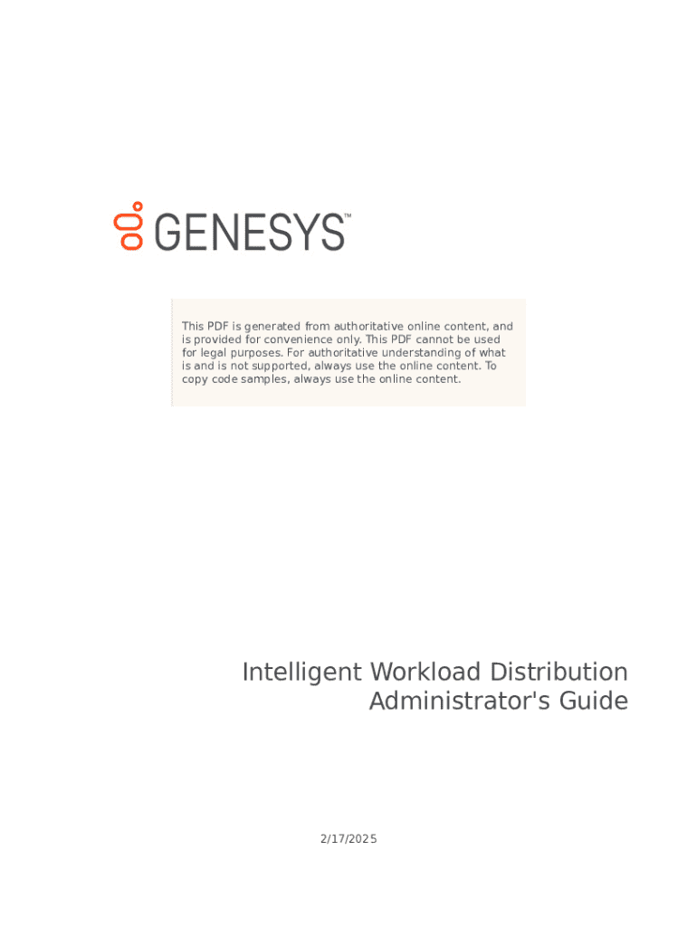 This guide provides comprehensive instructions on how to set up, configure, and manage Intelligent Workload Distribution (IWD) within a contact center environment, including integrating with other systems and managing work items efficiently.