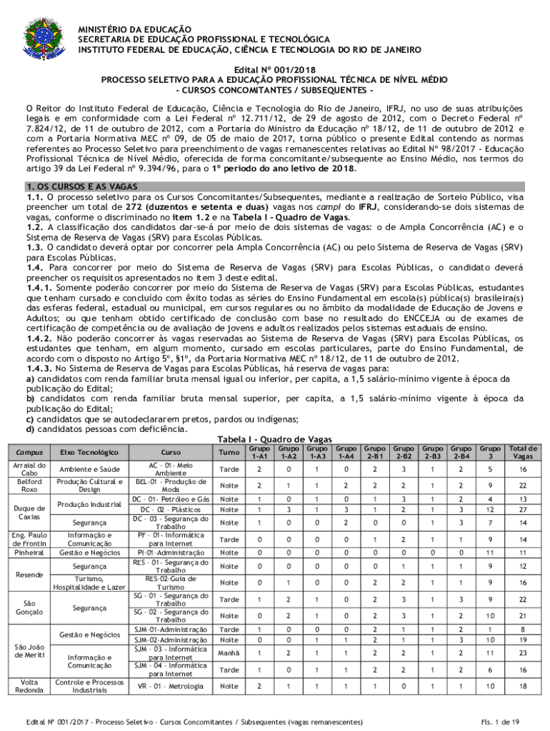 O preenchimento do edital n 0012018 deve ser feito de forma clara e seguindo o formato estipulado pela instituição responsável, incluindo informações sobre candidaturas, etapas do processo, e critérios de avaliação.