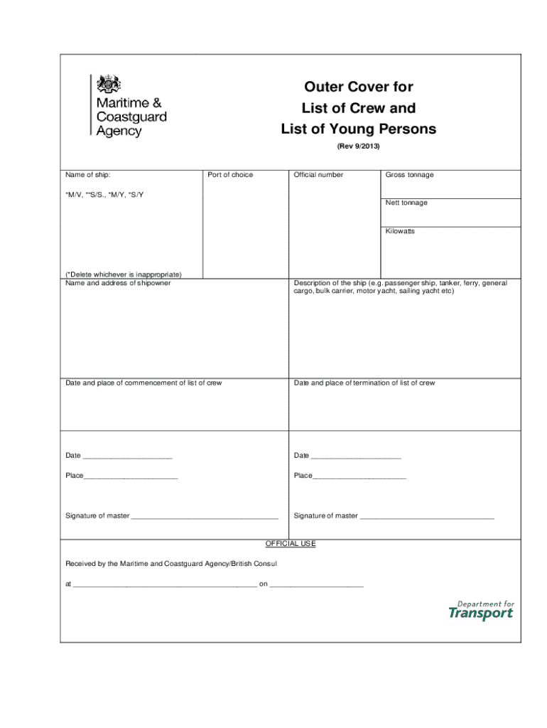 Get the free Outer Cover for List of Crew and List of Young Persons