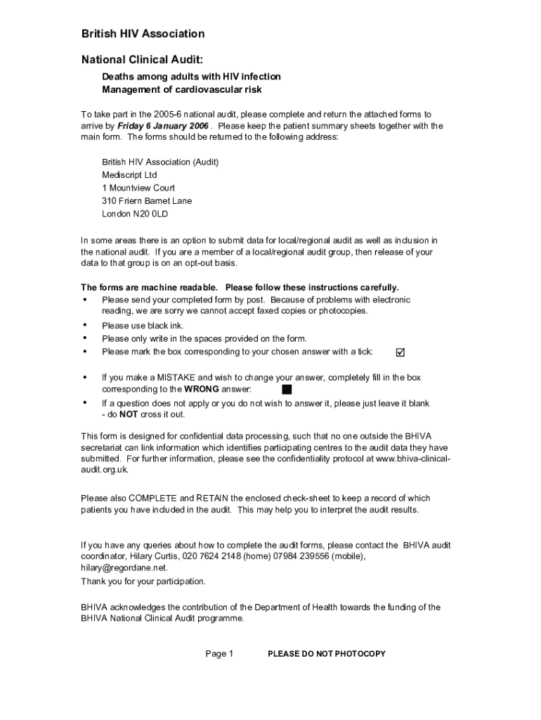 Get the free British Hiv Association National Clinical Audit