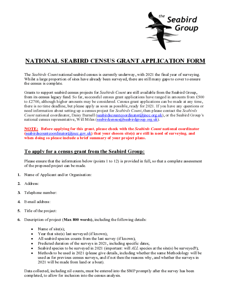 Get the free National Seabird Census Grant Application Form - seabirdgroup org