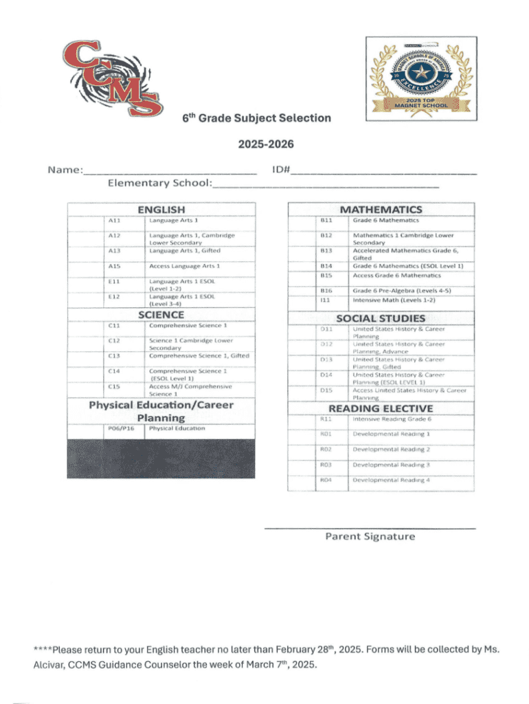 Get the free Subject Selection Form