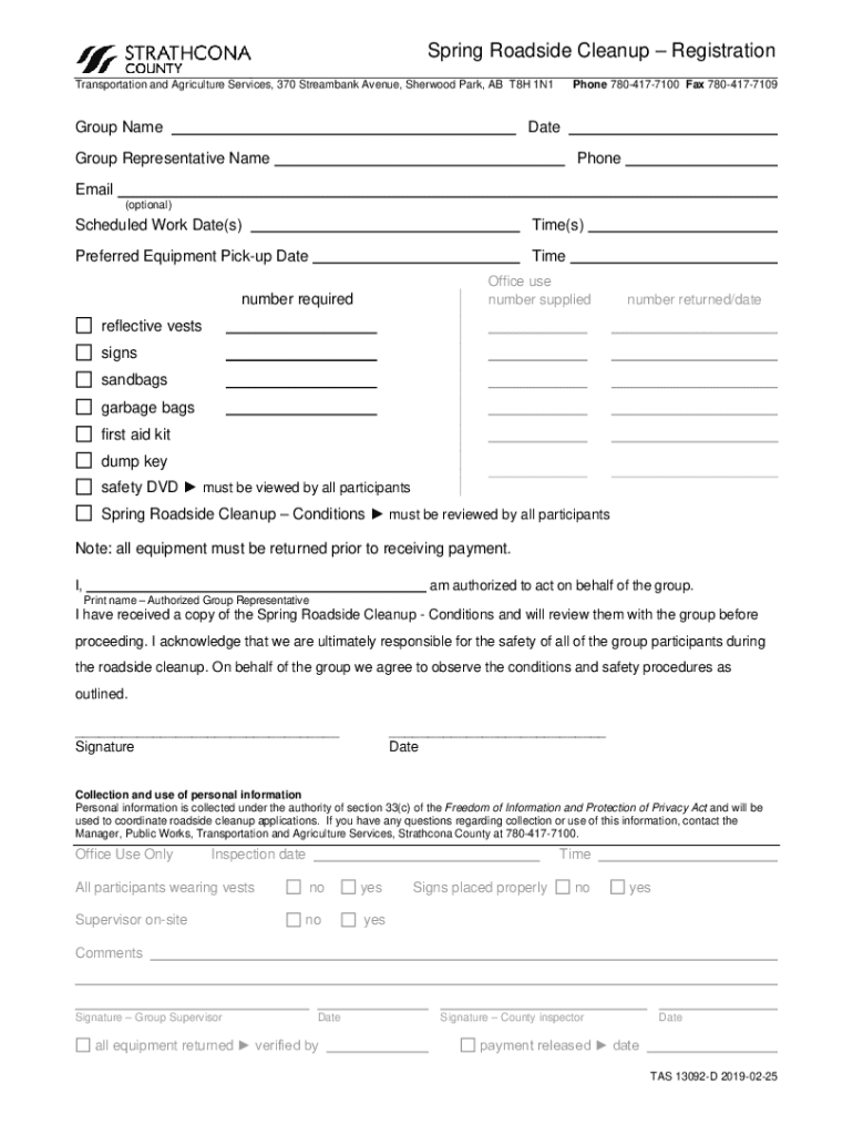 Edit your spring roadside cleanup registration form online