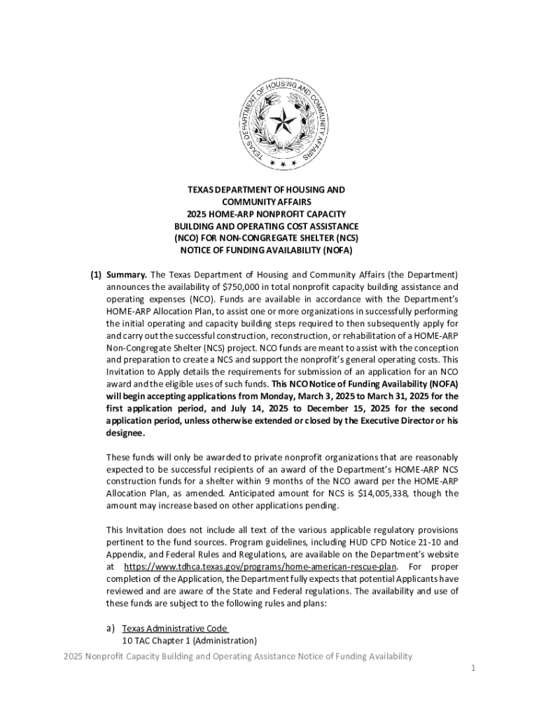 Get the free 2025 Home-arp Nonprofit Capacity Building and Operating Cost Assistance Nofa