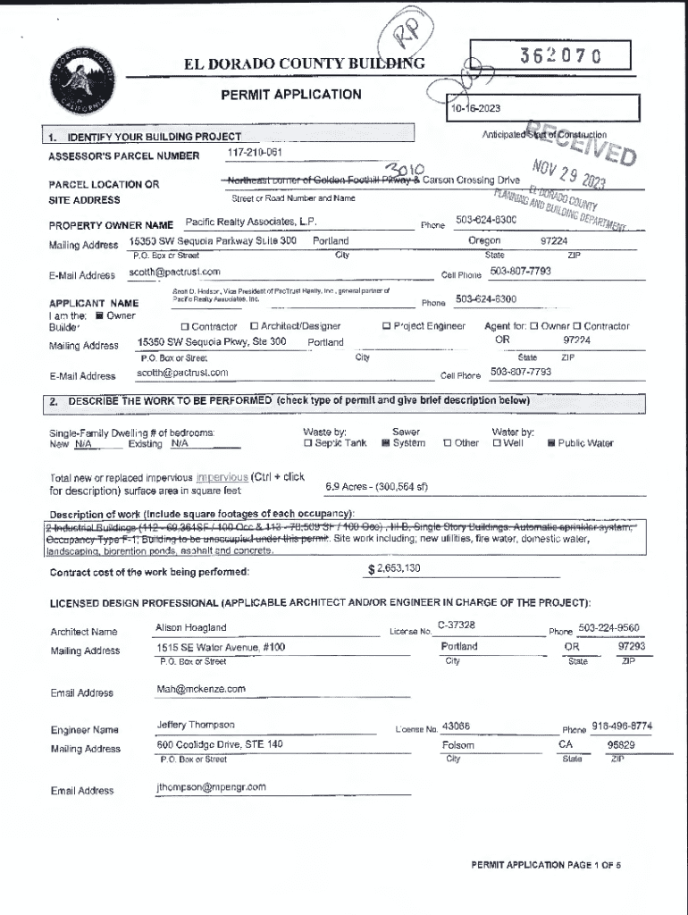 Get the free el dorado county building permit application