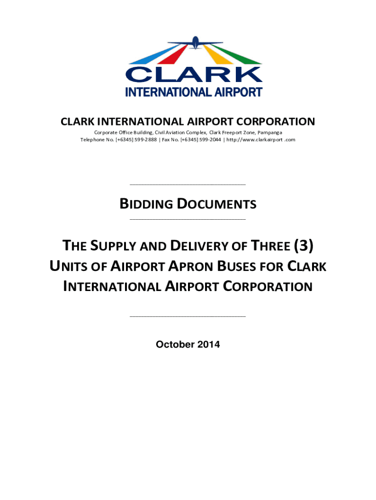 This document outlines the bidding process for the supply and delivery of airport apron buses, including eligibility requirements, bidding procedures, and terms of delivery. It details the specifications for the buses and the evaluation criteria for prospective bidders.