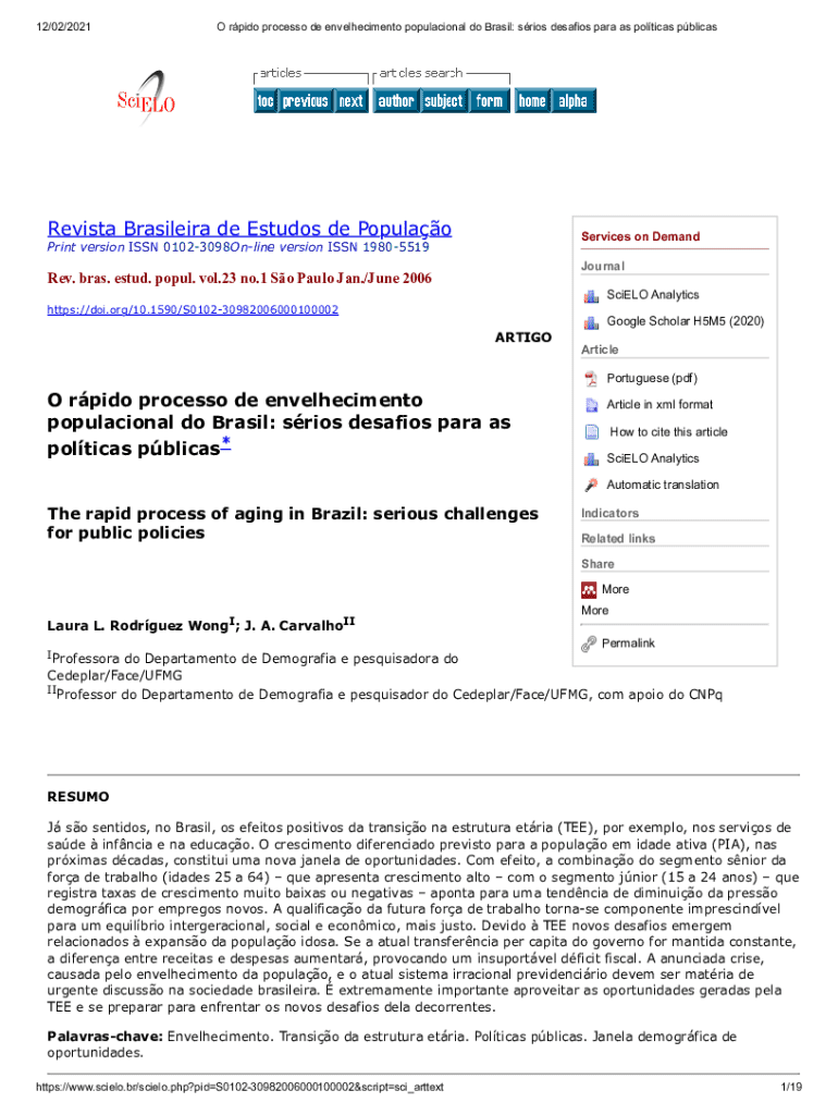 12/02/2021O rpido processo de envelhecimento populacional do Brasil: srios desafios para as polticas pblicasRevista Brasileira de Estudos de PopulaoServices on DemandPrint version ISSN 01023098Online