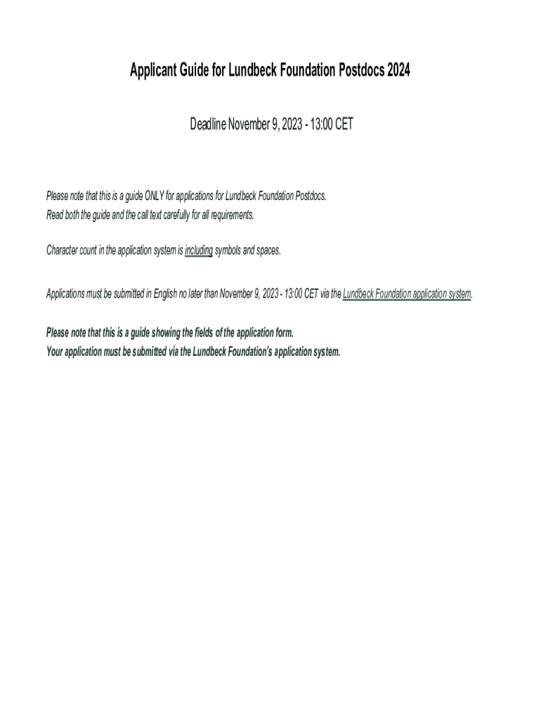 Get the free Applicant Guide for Lundbeck Foundation Postdocs 2024