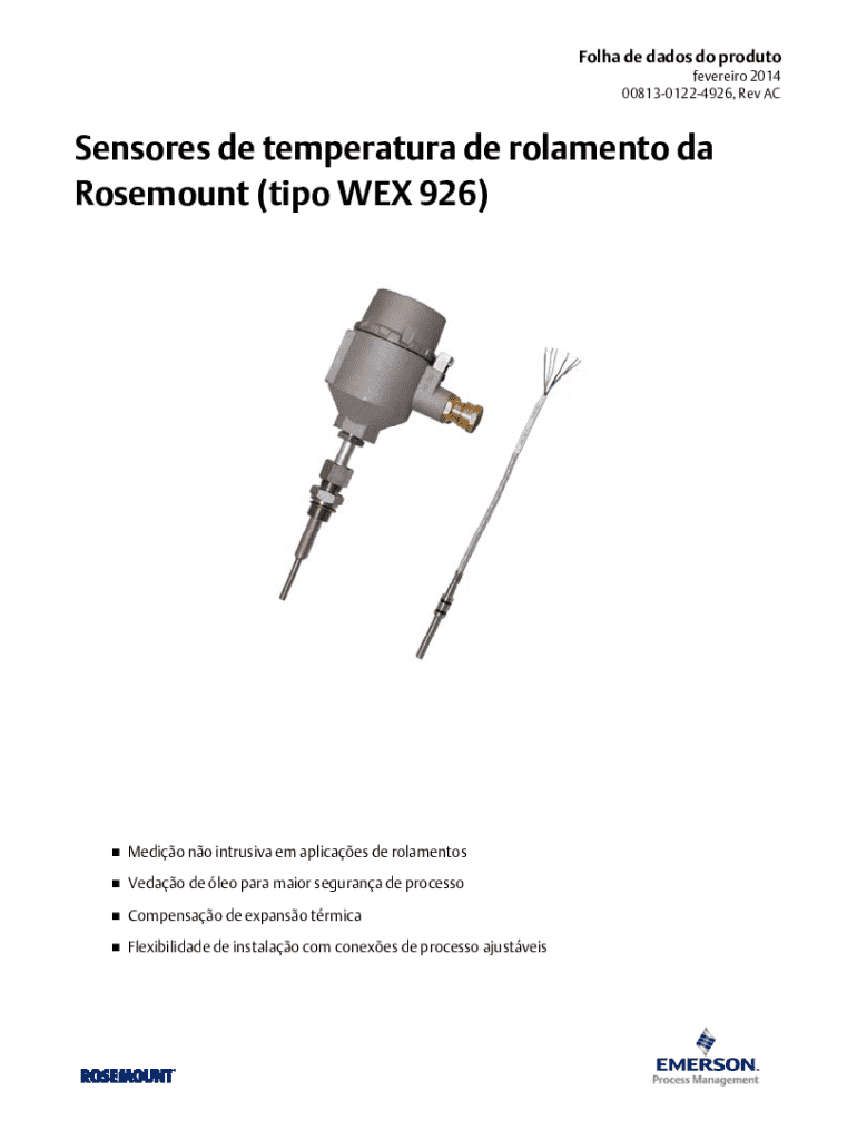O sensor de temperatura de rolamento WEX926 da Rosemount oferece uma solução confiável para as suas necessidades de medição de temperatura de rolamento, proporcionando desempenho superior em