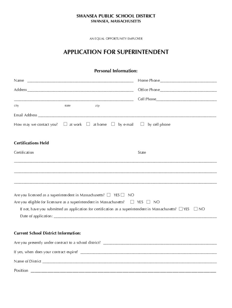 Get the free Application for Superintendent