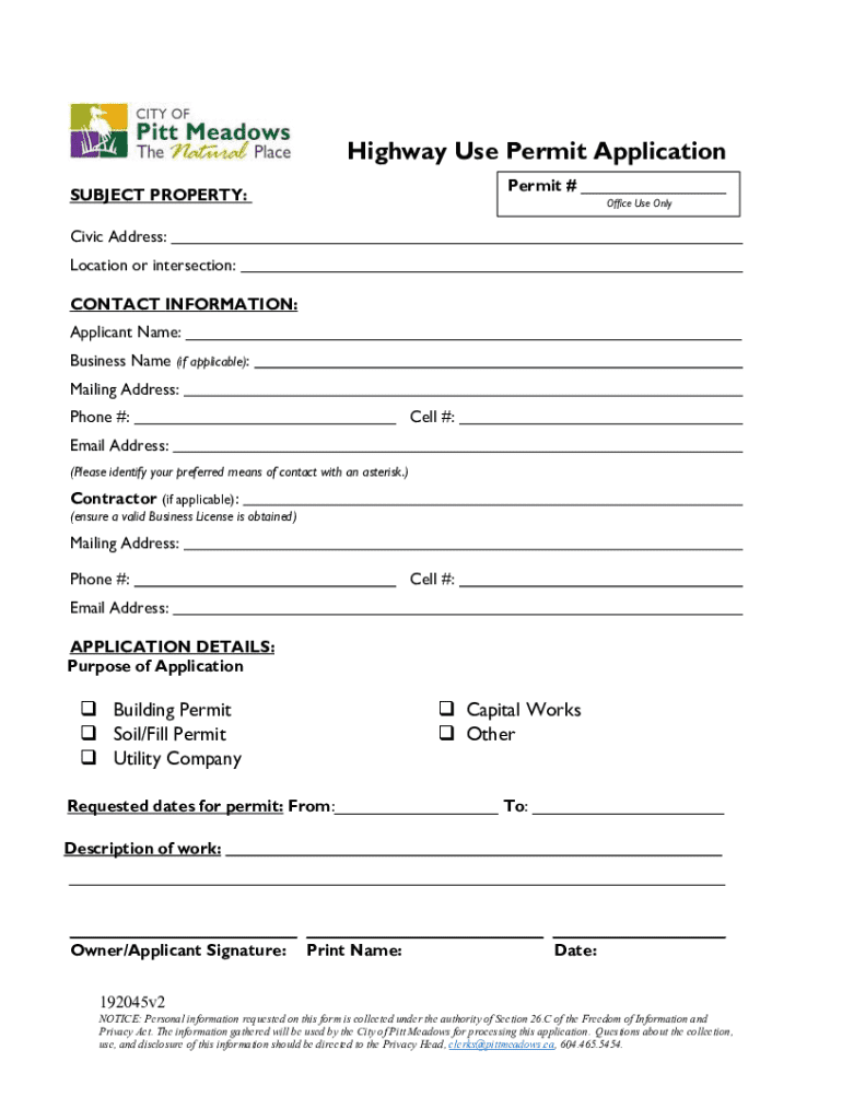 Highway Use Permit Application is not the form you're looking for?Search for another form here.