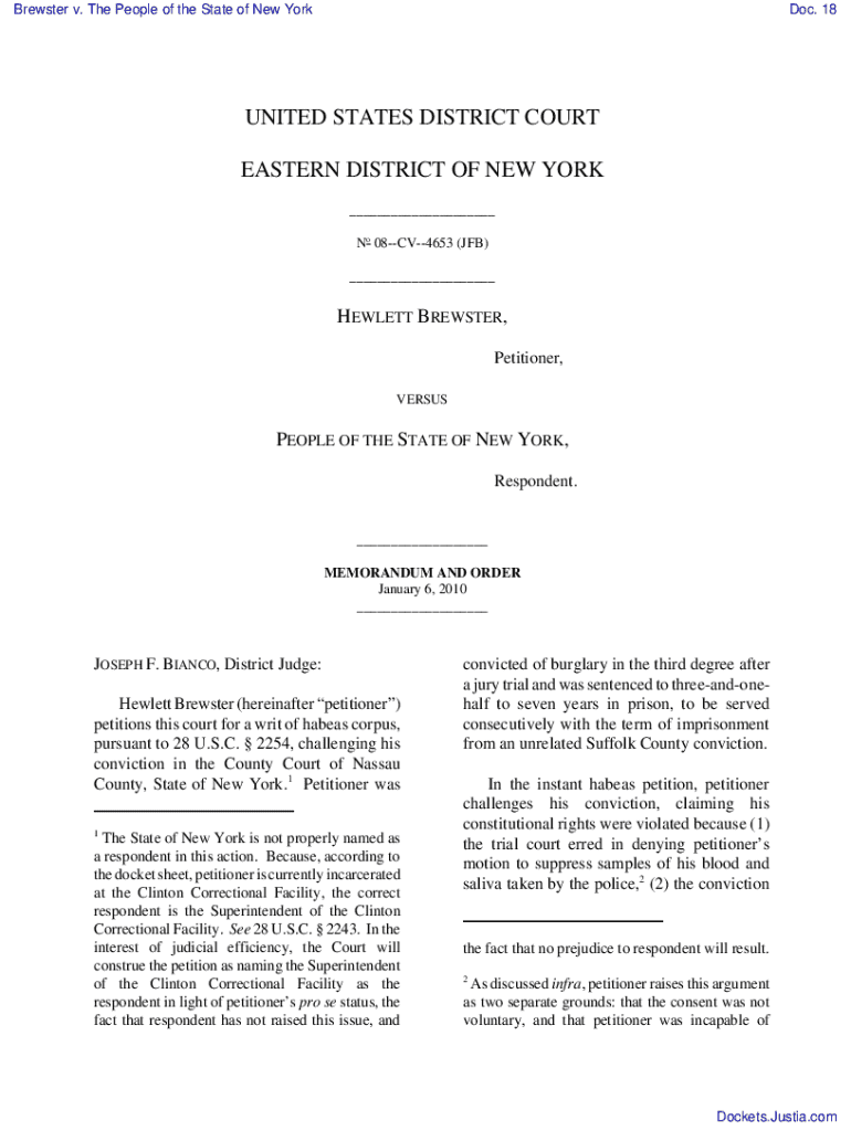 Get the free Brewster V. the People of the State of New York