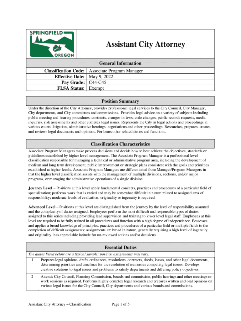Get the free Assistant City Attorney