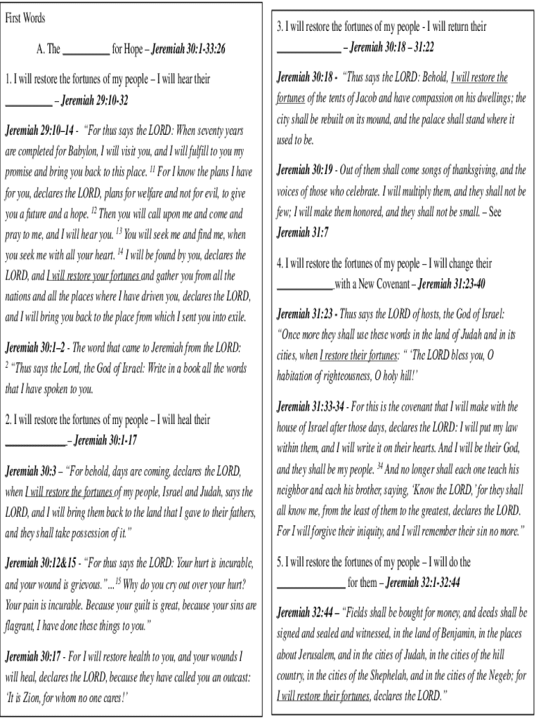 Get the free The for Hope Jeremiah 30:1-33:26