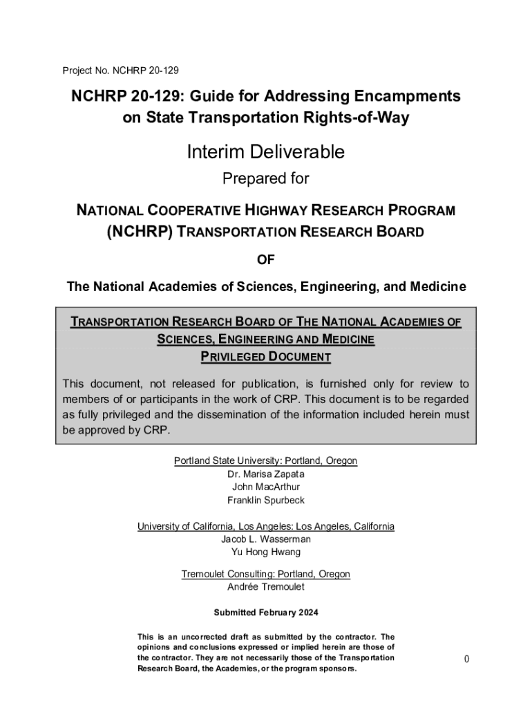 Get the free Nchrp 20-129: Guide for Addressing Encampments on State Transportation Rights-of-way