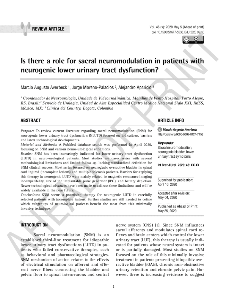Vol. 46 (x): 2020 May 5.[Ahead of print]REVIEW ARTICLEdoi: 10.1590/S16775538.IBJU.2020.99.10Is there a role for sacral neuromodulation in patients with neurogenic lower urinary tract dysfunction?