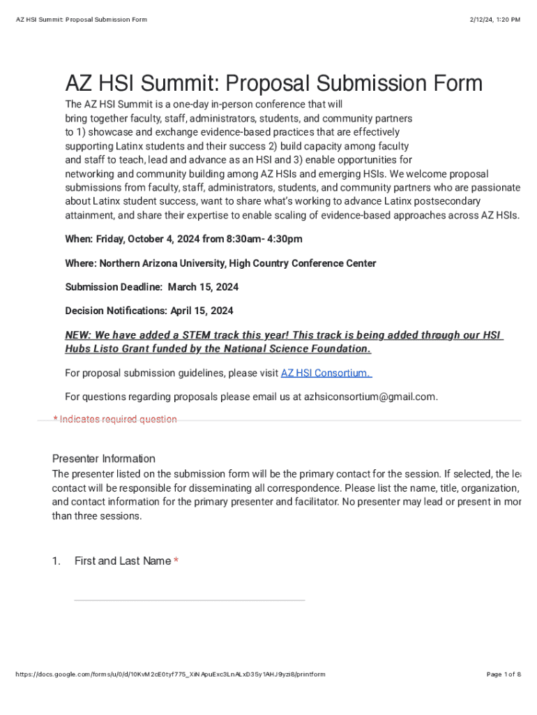 Edit your az hsi summit proposal form online