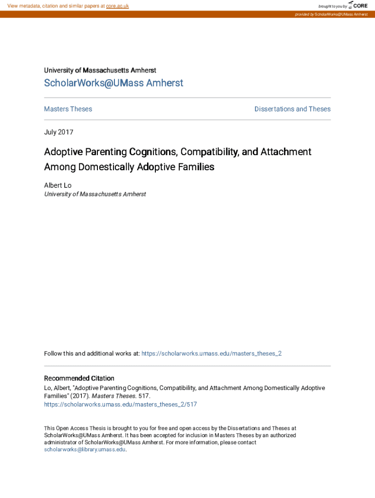 Get the free Adoptive Parenting Cognitions, Compatibility, and Attachment Among Domestically Adop...