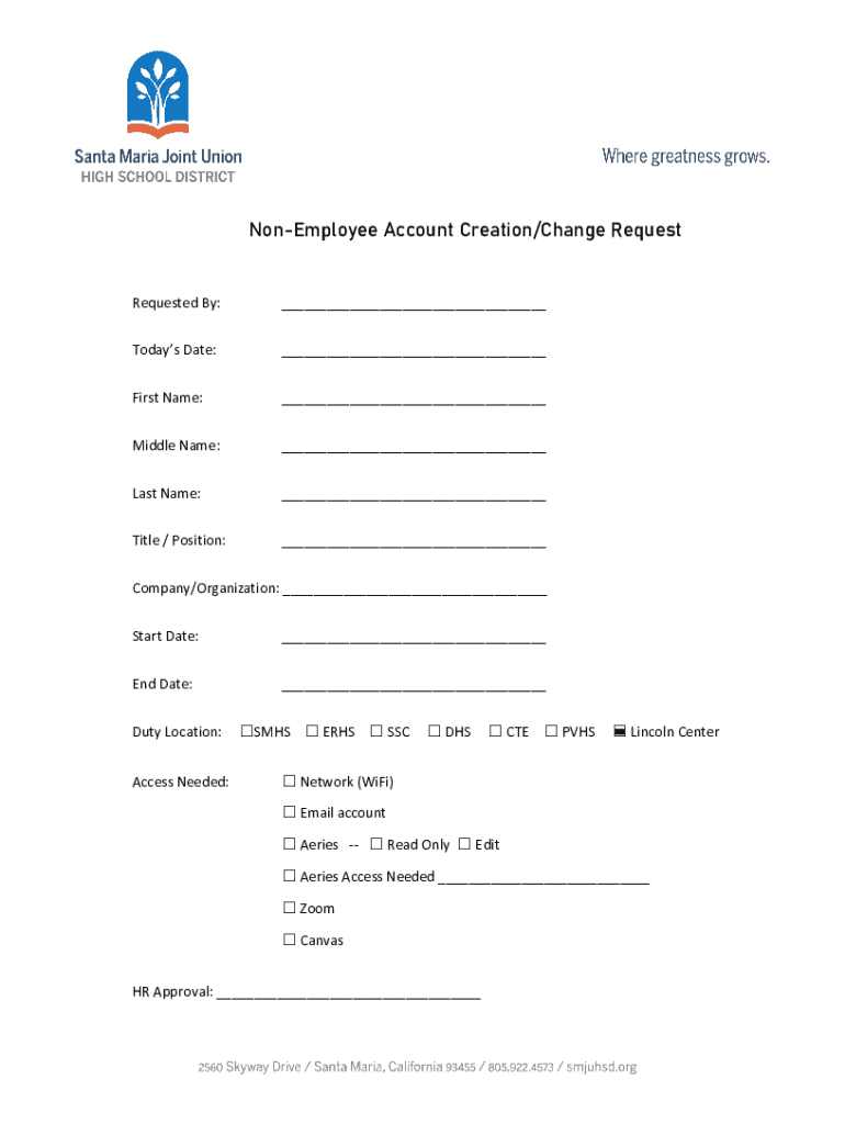 Get the free Non-employee Account Creation/change Request