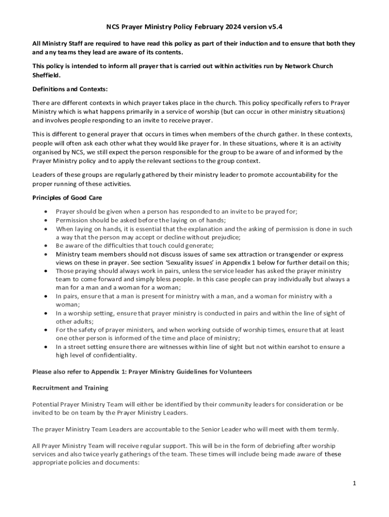 Get the free Ncs Prayer Ministry Policy