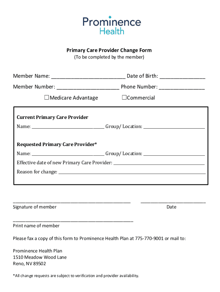 Get the free Primary Care Provider Change Form