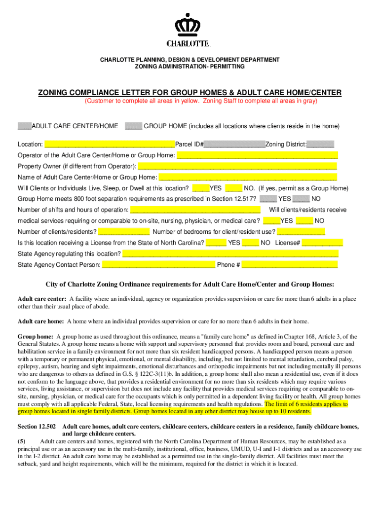 Get the free Zoning Compliance Letter for Group Homes & Adult Care Home/center