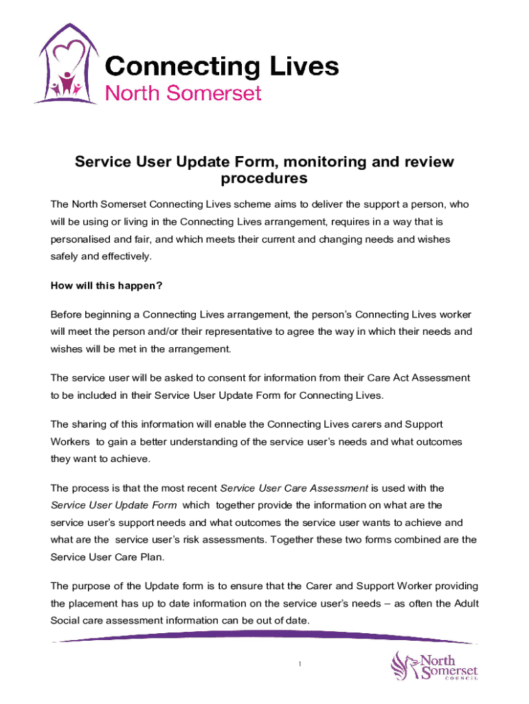 Get the free Service User Update Form - n-somerset gov