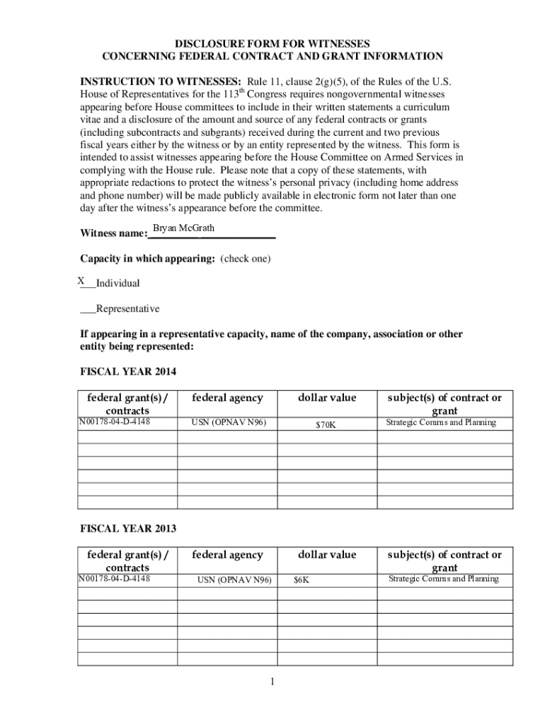 Get the free Disclosure Form for Witnesses - docs house