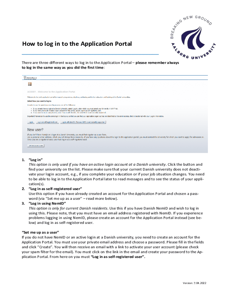 Get the free How to log in to the Application Portal